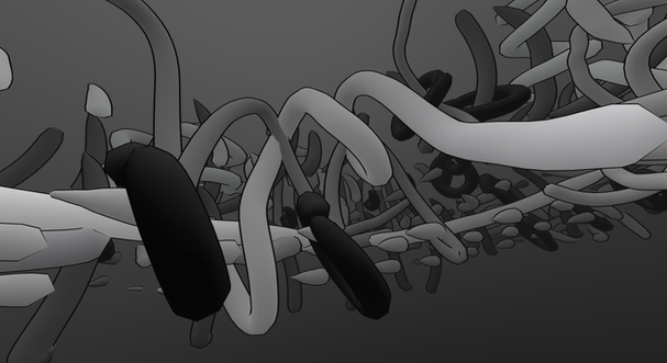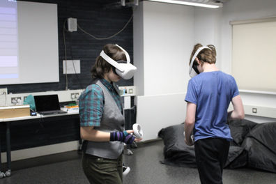 The most successful of these test VR paintings scores are ‘Links’ (2023) and ‘Rib’ (2023), from which I later produced two animated (un-scored) shorts from these collaboratively made virtual abstract paintings. This project is the beginning of an exploration into the physicality and performative potential for collaborative making and virtual painting. Below are a collection of photos, stills and films taken from those workshops.